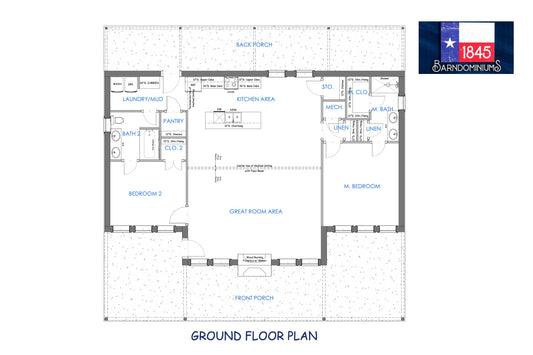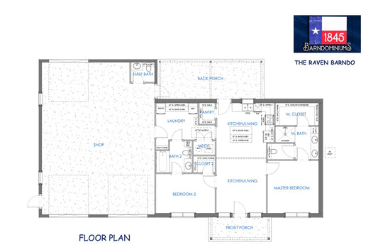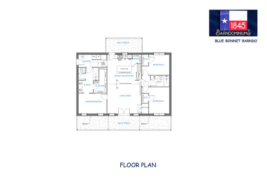 The Bluebonnet is a 3 BR / 2 BA plan with 1734 sq ft of living space.