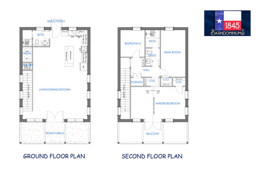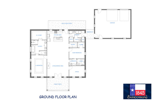 The Poteet Farmhouse is a 2 BR / 2 BA plan with 1734 sq ft of living space.